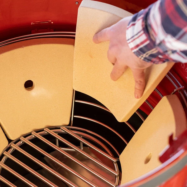 Kamado Joe® continues its innovation with the Kettle Joe™ – a 22” kettle grill with unique ceramic cooking features that improve heat retention, fuel efficiency, and smoking ability. The 2-Tier Divide & Conquer® system allows you to cook foods at different temperatures. The grill also comes with the revolutionary SlōRoller™ Hyperbolic Smoke Chamber insert, which harnesses the power of cyclonic airflow technology to control heat and smoke at smoking temperatures.