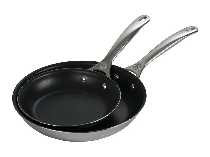 Set includes: 8″ nonstick stainless steel fry pan and 10″ nonstick stainless steel fry pan.