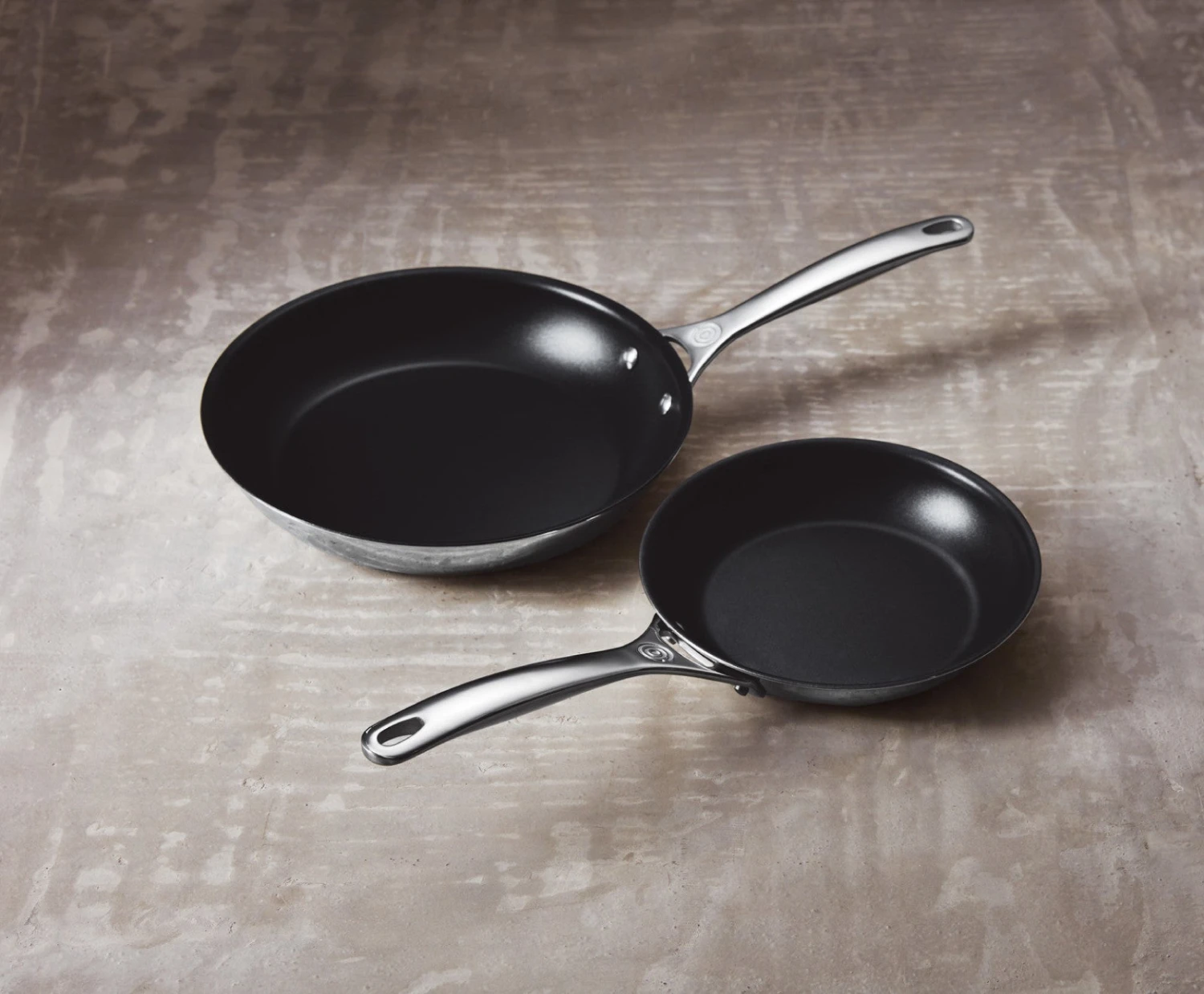 Le Creuset nonstick stainless steel fry pans offer superior control at every stage of preparation, with quick responsiveness to heat adjustments. Durable and versatile, tri-ply stainless steel is well-suited to both stovetop and oven use. The durable nonstick coating provides reliable food release, making cooking and cleanup fast and easy.