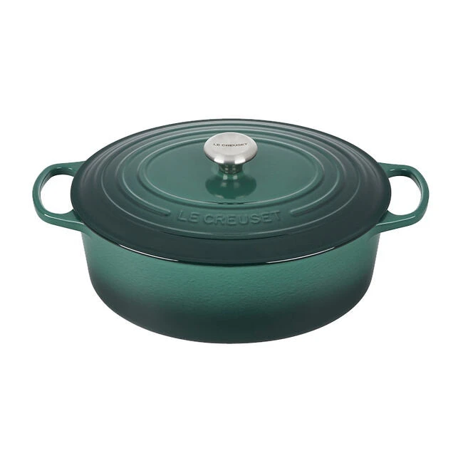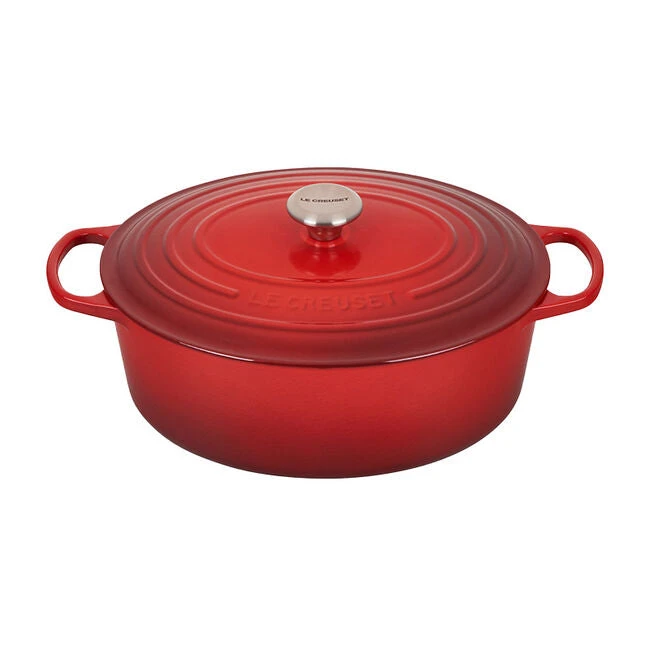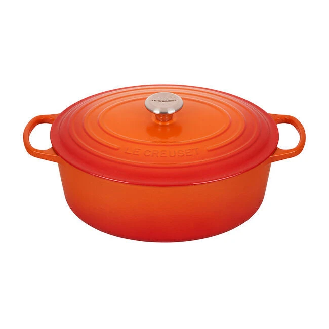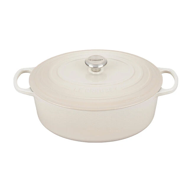 The iconic Le Creuset Dutch oven is indispensable in the kitchens of home cooks and professional chefs alike. Expertly crafted from enameled cast iron, the everyday versatility of the Dutch oven makes it ideal for everything from slow-cooking and braising to roasting, baking, frying and more. The oval shape is particularly suited for larger cuts of meat, whole chickens and for baking oval-shaped loaves of bread.