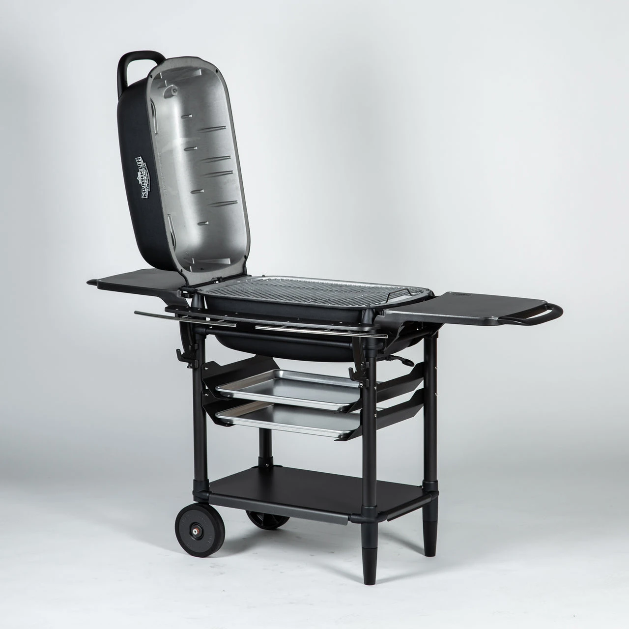 - More shelf space. You get two big, roomy cast aluminum shelves for all your meat, prep, mise en place or or just a place to set your cocktail. The best part, they lock the capsule in place when deployed and then fold down when not in use*