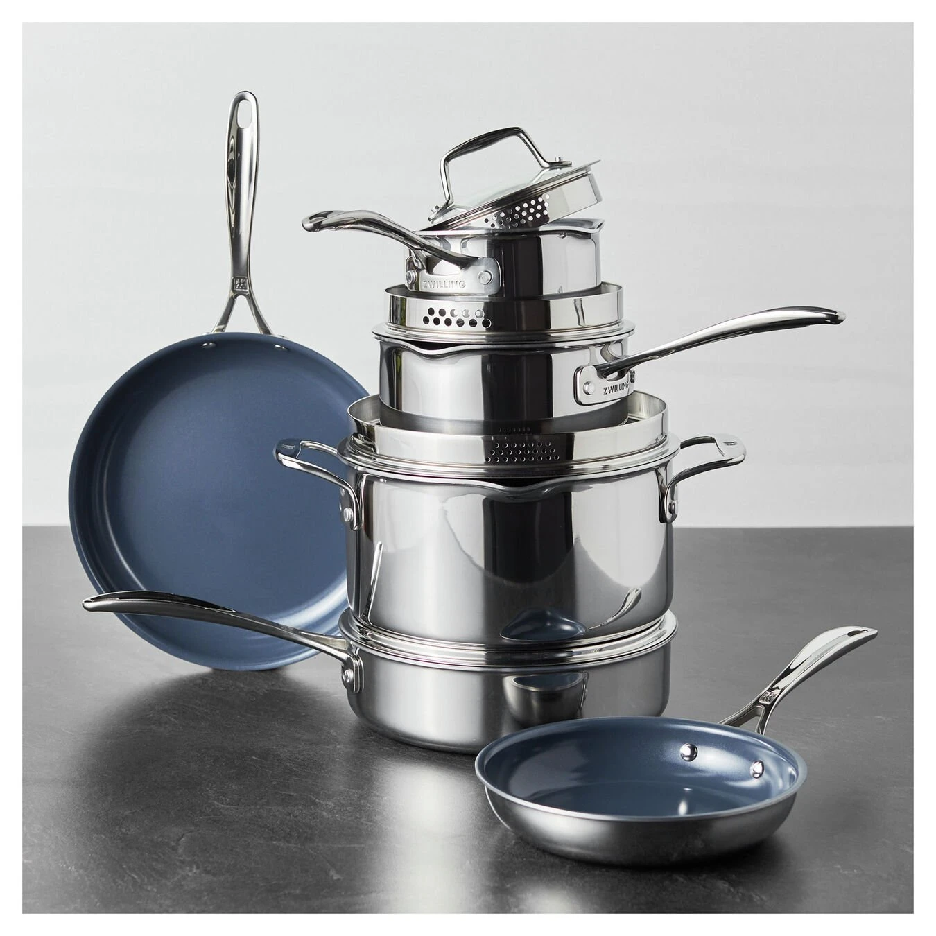 A revolutionary new ceramic nonstick for our popular pans. One flip and you’ll be hooked on our latest nonstick. Our ZWILLING Clad CFX line features Ceraforce XTREME ceramic nonstick, a revolutionary coating that is 50% longer lasting and 3x more durable than our previous nonstick. When paired with the even-heating 3mm aluminum core, you’ll enjoy perfectly browned and braised dishes that don’t stick. Chef-friendly features include no-spill pour spouts and comfortable handles that allow for easy maneuvering. All these perks and more make ZWILLING Clad CFX a pleasure to cook with.